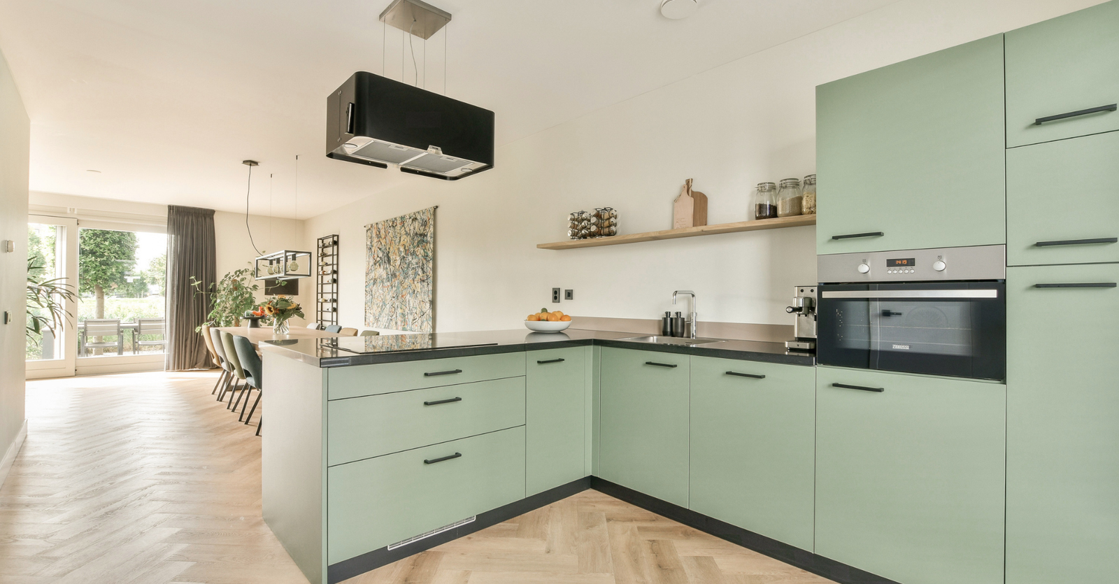 - intégration de l’électroménager encastré (frigo, lave-vaisselle, plaque de cuisson, hotte aspirante)